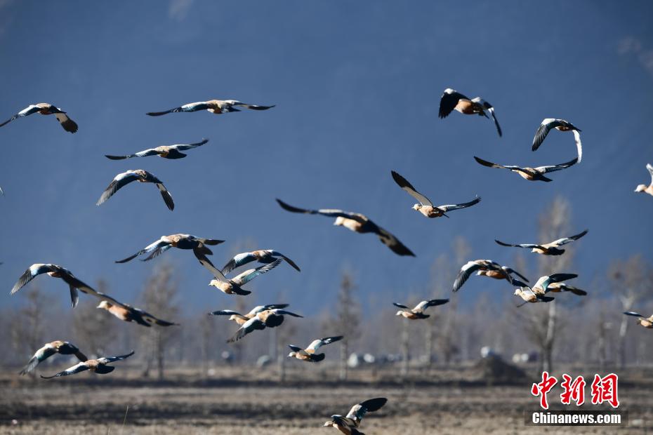 近年來,拉薩水係治理工程的實施,讓拉薩河周邊環境變得更好。每年10月中下旬,來拉薩越冬的候鳥不斷增多,在拉薩河畔處處都能看見斑頭雁、紅嘴鷗、黃麻鴨等鳥類的身影。據悉,目前,拉薩河城區段形成了3公裏長的湖麵水城,水城麵積達1258畝(mu) ,平均水深2.5米,蓄水量約105萬(wan) 立方米,不僅(jin) 增加了空氣濕度、含氧量,完善了城市防洪體(ti) 係,還提高了地下水位,鳥類種群數量增加。圖為(wei) 一群黃麻鴨在拉薩河畔的農(nong) 田上飛翔。 貢嘎來鬆 攝