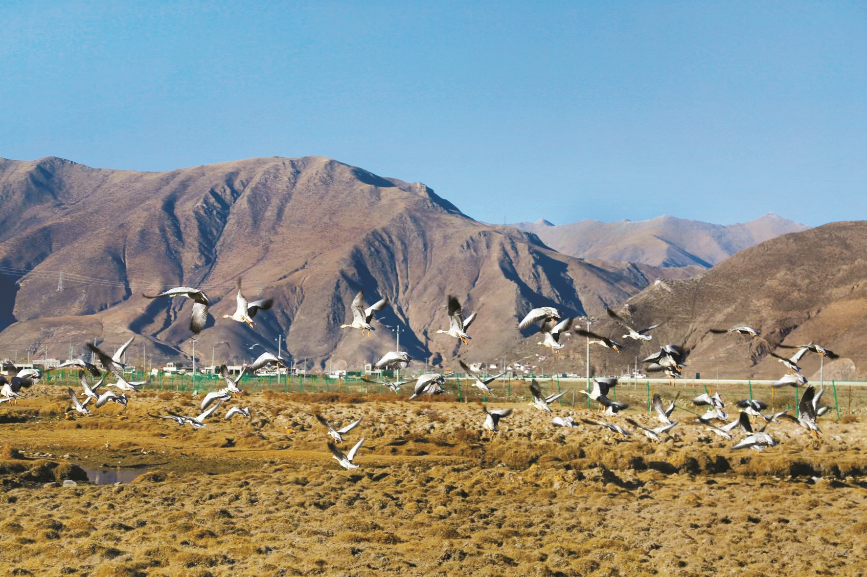 入冬以來,拉薩市墨竹工卡縣工卡帕日濕地生態功能保護區內(nei) ,各種候鳥展翅嬉戲,這裏已成為(wei) 候鳥的樂(le) 園。今年來此越冬的斑頭雁數量遠遠超出去年同期。