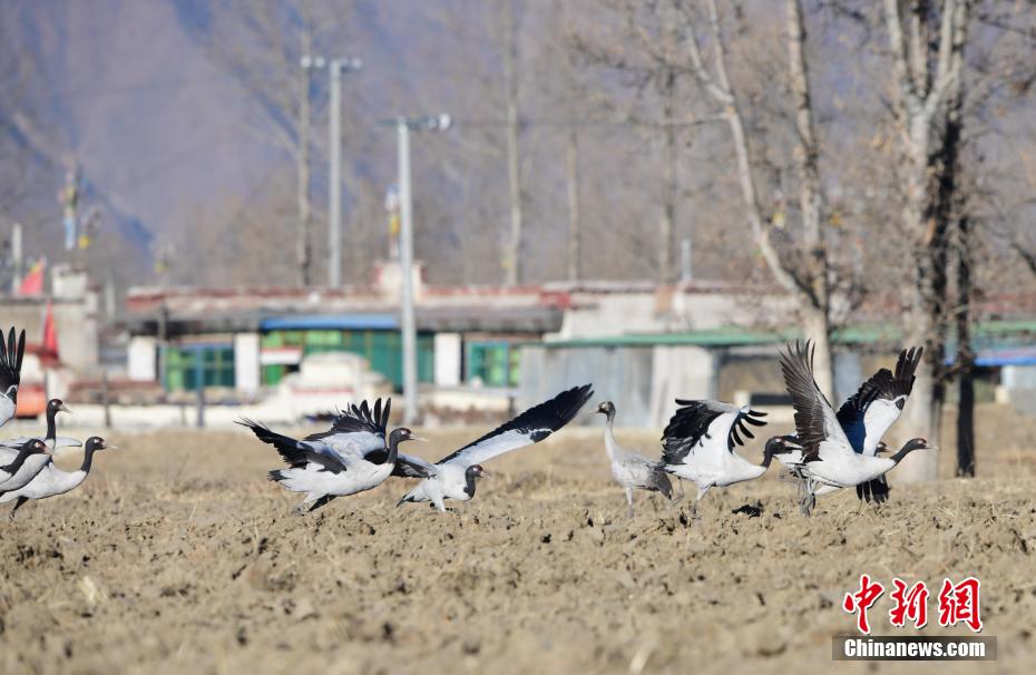 西藏米林迎來高原“貴客”——黑頸鶴
