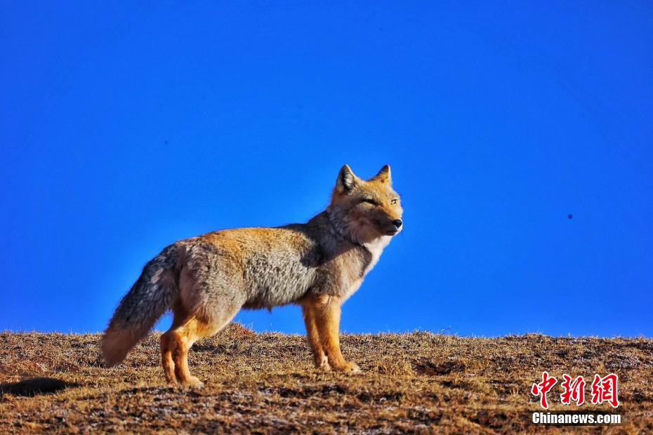 青海雜多三隻藏狐曬太陽 表情神似複製粘貼
