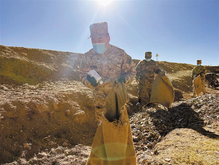 圖為(wei) 安多縣武裝部官兵在河道沿岸撿拾垃圾,時刻守護著安多縣美麗(li) 生態環境。 記者 高玉潔 卞琳琳 攝