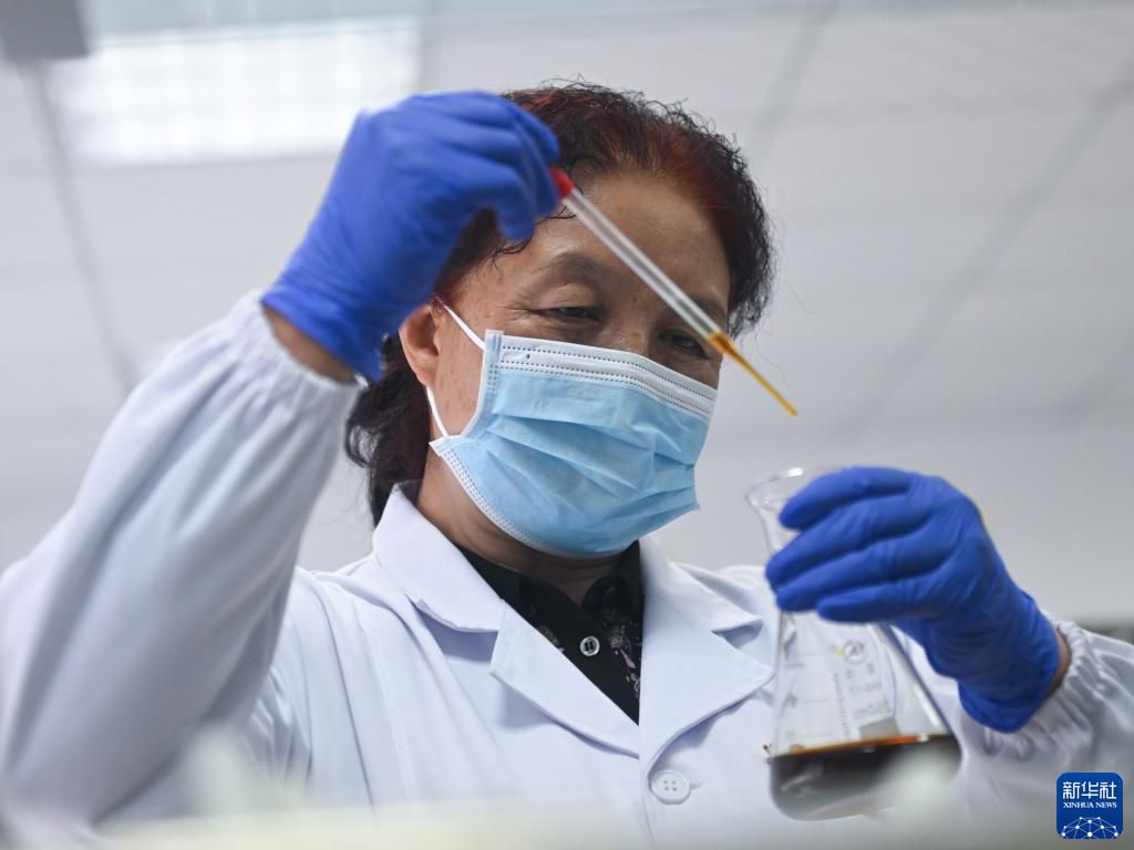 張錦梅在青海省西寧市林業(ye) 科學研究所實驗室內(nei) 配製藥劑(2022年9月14日攝)。新華社記者 張龍 攝