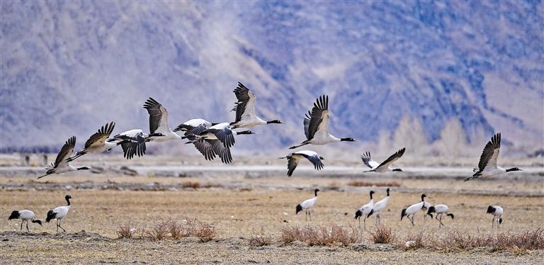 近年來,隨著國家加大青藏高原生態保護力度,西藏多措並舉(ju) 實施生態建設,廣大農(nong) 牧民群眾(zhong) 保護野生動物的意識不斷提升,黑頸鶴及其棲息地得到了較好的保護,黑頸鶴數量逐年遞增。