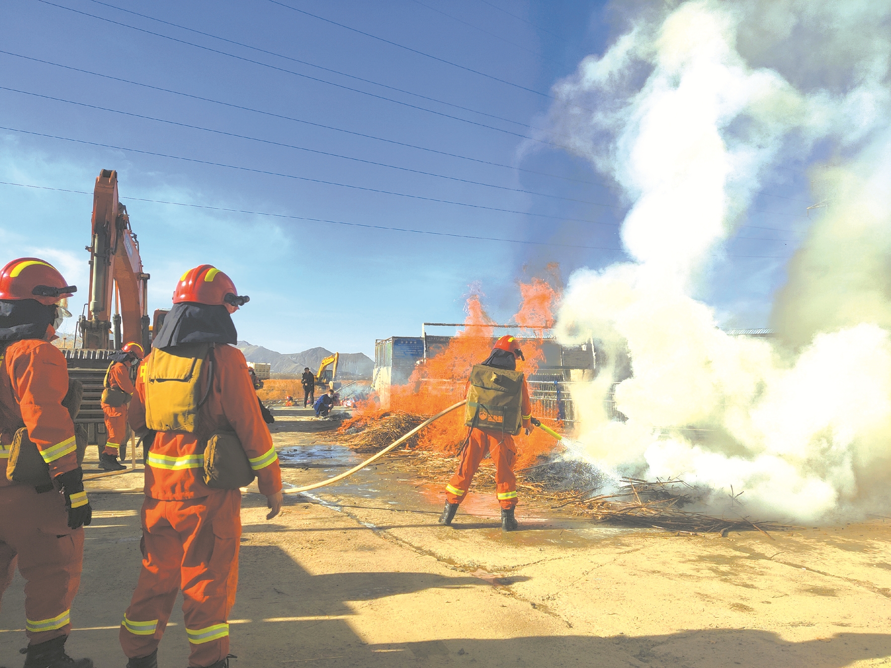 圖為(wei) 消防演練現場。拉薩融媒記者 餘(yu) 洋洋攝