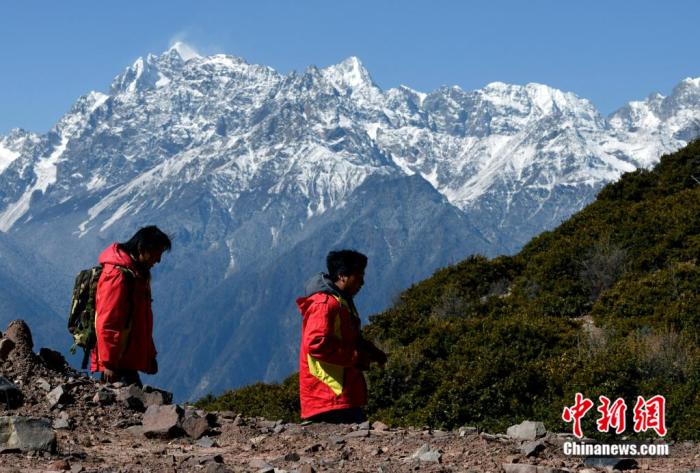 芒康滇金絲(si) 猴國家級自然保護區管護員旦增次措(圖左)與(yu) 仁青江措(圖右)正在巡邏。李林 攝