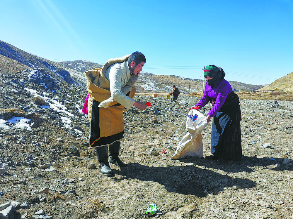 “這樣做是為(wei) 了保護我們(men) 世代生活的草原,撿垃圾不丟(diu) 人。”紮西當智對兒(er) 子說。