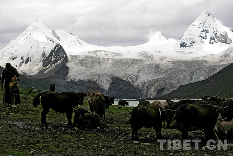 這是比如縣薩普冰川下放牧的犛牛群(唐召明2014年7月10日攝)