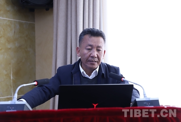 圖為(wei) 項目負責人巴桑旺堆匯報項目執行與(yu) 管理方案