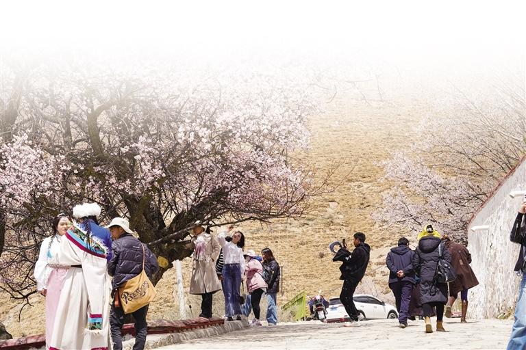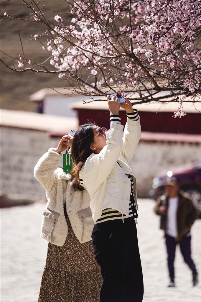 帕邦喀距離拉薩市區不到一小時車程,每年桃花盛開的時候,帕邦喀便成為(wei) 人們(men) 賞桃花、踏春遊的熱門景點。昔日裏略顯安靜的帕邦喀此時也因賞花的人們(men) 熱鬧起來。帕邦喀桃花盛開的美景也在微信朋友圈、短視頻平台等社交媒體(ti) 上刷屏,吸引著大批市民遊客拍照打卡。
