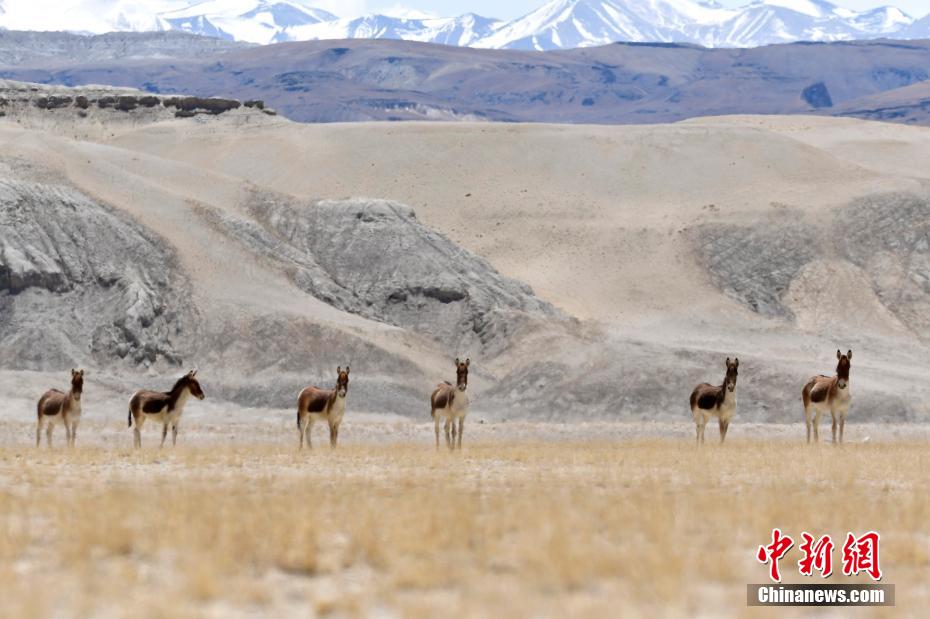 4月10日,西藏阿裏地區劄達縣拍攝到的藏野驢。