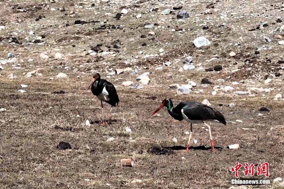 近日,攝影師在位於(yu) 祁連山國家公園青海片區的青海省海北藏族自治州祁連縣阿柔鄉(xiang) 境內(nei) 拍攝到兩(liang) 隻黑鸛愜意覓食、翱翔。