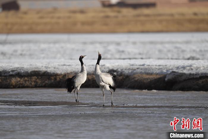 圖為(wei) 一對成體(ti) 黑頸鶴在黨(dang) 河濕地嬉戲。(資料圖) 受訪者供圖