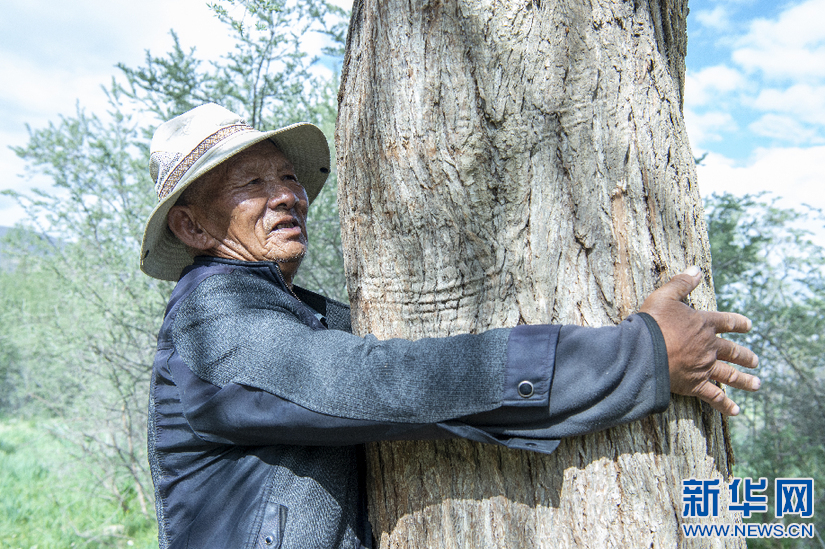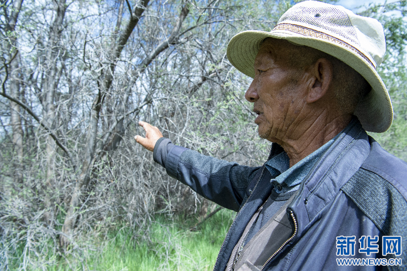 6月8日,索朗拉傑在介紹20多年前種的沙棘。新華網 旦增努布 攝
