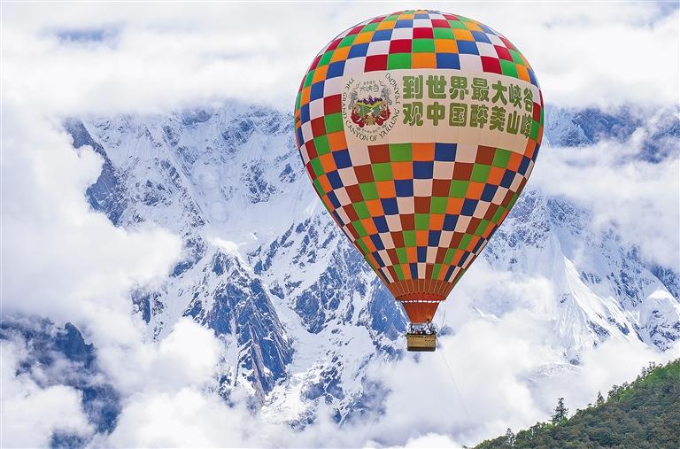 遊客在米林市派鎮乘坐熱氣球俯覽雅魯藏布大峽穀。