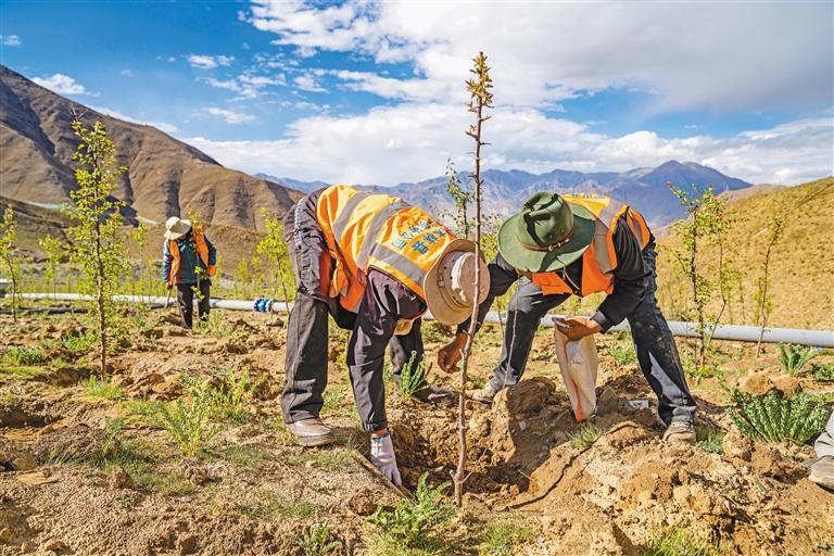 拉薩南北山綠化工程是西藏規模最大的營造林建設工程。2022年,拉薩市完成造林綠化55.87萬(wan) 畝(mu) ,林草生態建設促進群眾(zhong) 就業(ye) 超過168萬(wan) 人次。