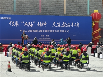 西藏自治區總工會(hui) 黨(dang) 組成員、副主席邊巴,拉薩市副市長鄭衛國,山南市副市長江嘎及中交第二公路工程局有限公司相關(guan) 領導出席貫通儀(yi) 式。