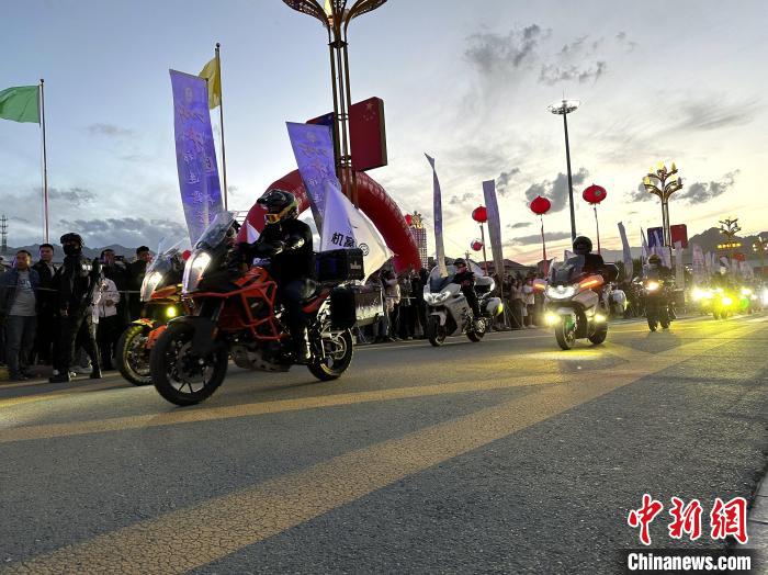 圖為(wei) 祁連縣機車巡遊歡迎八方來客。 王振國 攝