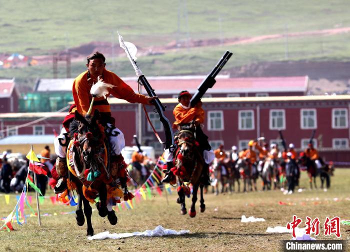 資料圖為(wei) 玉樹州雜多縣瀾滄江源生態文化旅遊係列活動開幕式上的馬術表演。薛蒂 攝