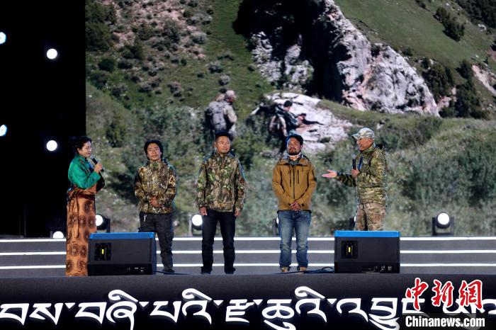 資料圖為(wei) 紀錄片《雪豹和她的朋友們(men) 》導演奚誌農(nong) (右一)在雜多縣分享創作背後的故事。薛蒂 攝