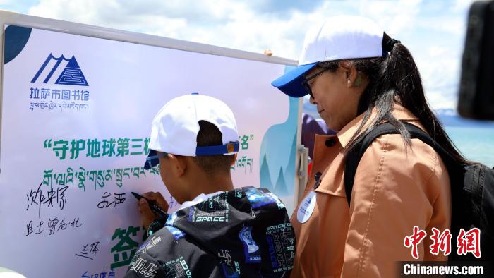 圖為(wei) 青少年在公益環保簽名活動上簽名。拉薩市圖書(shu) 館供圖
