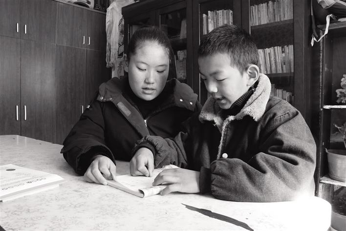 索朗曲珍輔導弟弟學習(xi) 。文/記者 婁夢琳 圖/記者 孫敏