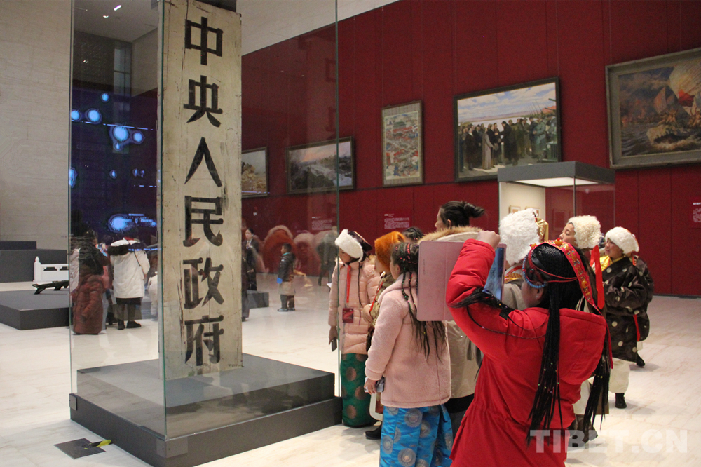 圖為(wei) “萌娃”們(men) 參觀中華人民共和國成立初期曾懸掛在北京中南海新華門內(nei) 的中央人民政府木牌 攝影:李元梅