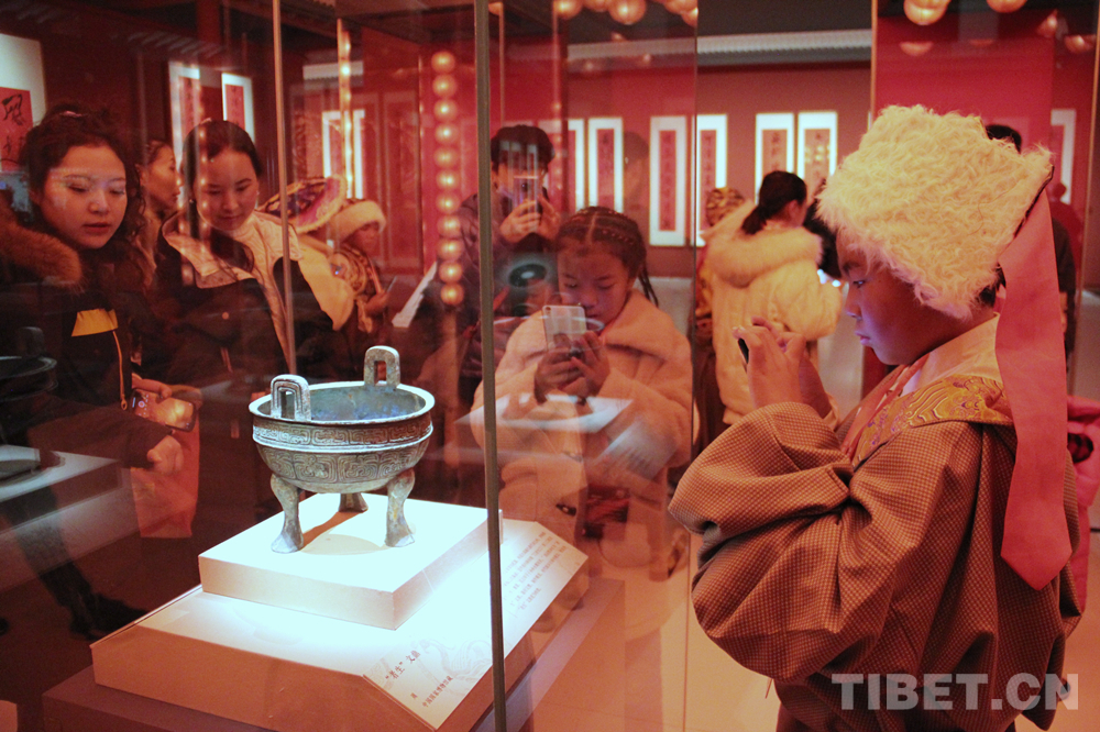 圖為(wei) “萌娃”們(men) 參觀“瑞彩平安——2020新春展”中的周代“者生”文鼎 攝影:李元梅