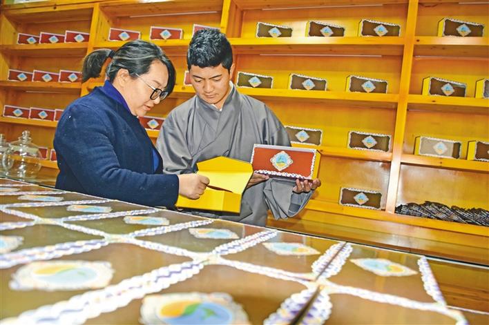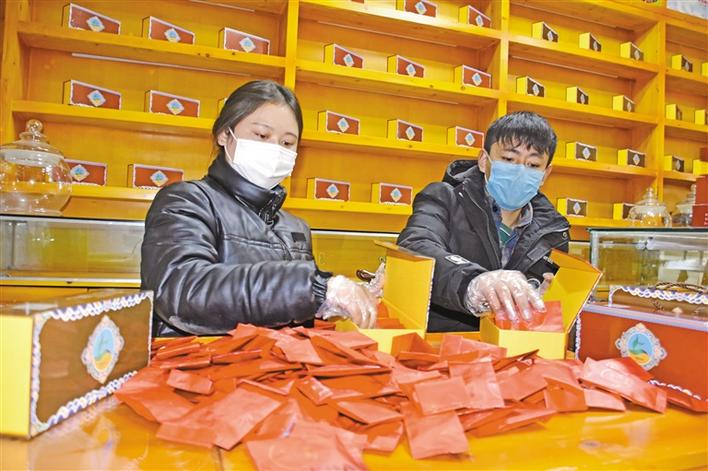 穹布倉(cang) 大學生創業(ye) 者正在包裝藏藥蟲草茶。