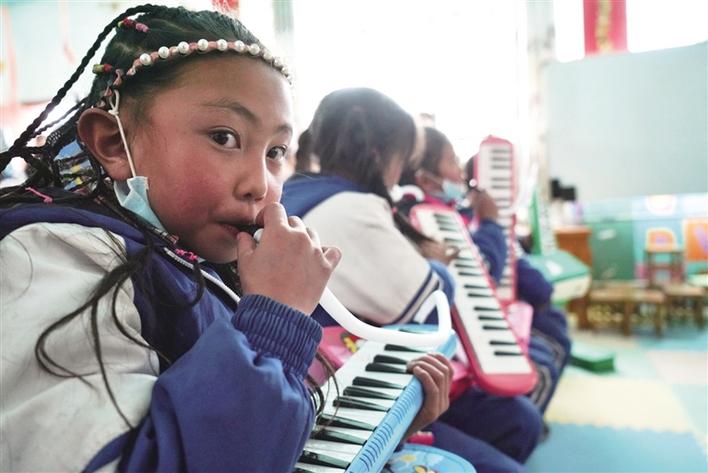 口風琴擁有良好的和聲能力,廣泛應用於(yu) 各類音樂(le) 中。但是,對於(yu) 果組小學的孩子們(men) 來說,這是他們(men) 第一次見到口風琴。布紮西是該小學三年級的一名小學生,他是校園“小歌星”,每年六一兒(er) 童節學校舉(ju) 行文藝匯演時,他都要演唱自己的拿手歌曲——《我的家鄉(xiang) 》。第一次見到口風琴,布紮西非常開心:“謝謝柏雪老師送給我們(men) 的禮物,我以後會(hui) 好好學習(xi) ,爭(zheng) 取早日吹奏《小星星》!”