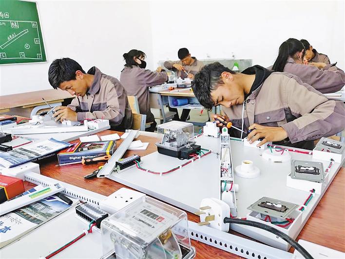 西藏技師學院的學生們(men) 在上電工實訓課程,為(wei) 將來走上工作崗位奠定基礎。記者 孫文娟 攝