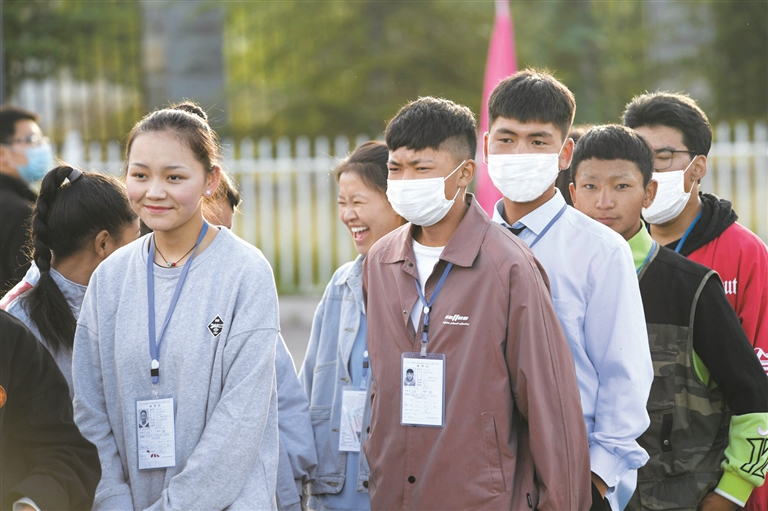 當日上午8時,考生統一乘坐拉薩市公交公司高考愛心接送車來到拉薩中學考點。在疫情防控常態化背景下,考生手拿準考證、身份證,戴著口罩,排隊測量體(ti) 溫之後,有序進入考場。為(wei) 應對突發狀況,考點外設置了隔離區,並有醫療人員駐守。參加高考的考生之間也互相加油打氣,考生拉巴頓珠說:“祝願大家都能好好發揮,考上自己心儀(yi) 的學校。”