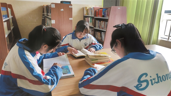 圖為(wei) 雷潔玉(中)和同學在圖書(shu) 館看書(shu) 。拉薩融媒記者 餘(yu) 洋洋攝