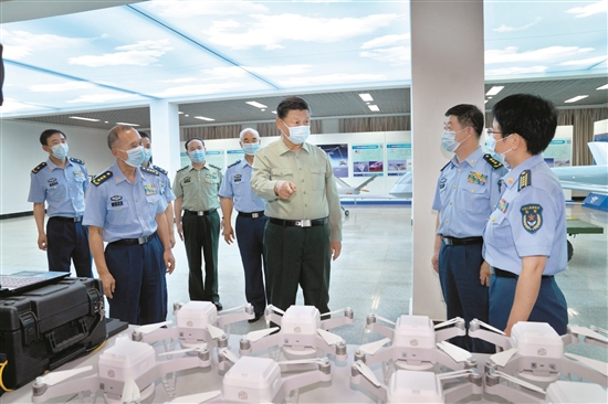 隨後,習(xi) 近平來到無人機實驗室,察看無人機操控教學設施,了解無人機操控員培養(yang) 情況。習(xi) 近平說,現在各類無人機係統大量出現,無人作戰正在深刻改變戰爭(zheng) 麵貌。要加強無人作戰研究,加強無人機專(zhuan) 業(ye) 建設,加強實戰化教育訓練,加快培養(yang) 無人機運用和指揮人才。