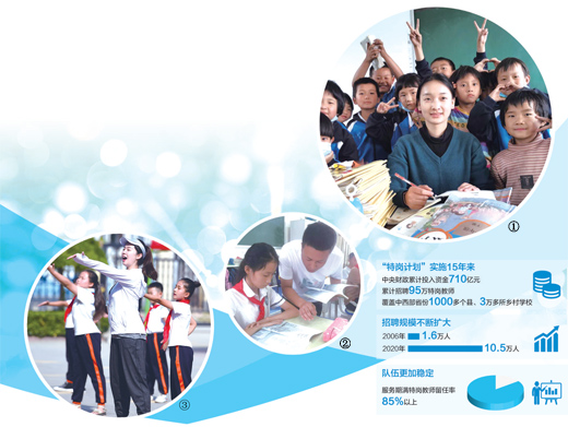 農(nong) 村義(yi) 務教育階段學校教師特設崗位計劃(簡稱“特崗計劃”)始於(yu) 2006年,每年公開招考選聘數萬(wan) 名高校畢業(ye) 生到中西部貧困縣農(nong) 村學校任教。