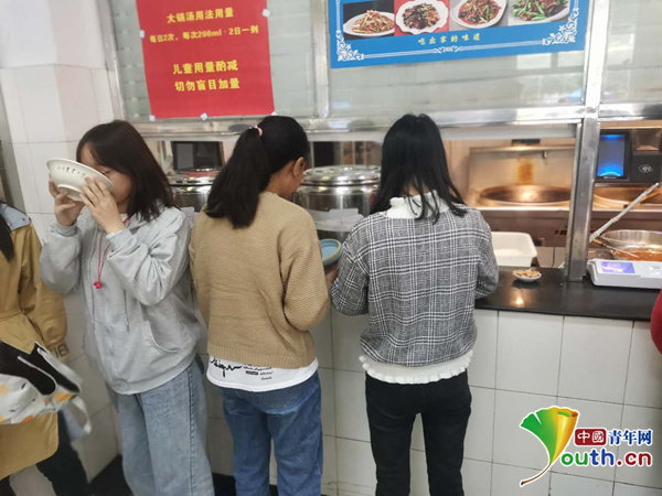 圖為(wei) 學生正在領取“大鍋湯”。中國青年網通訊員 廖旭 攝