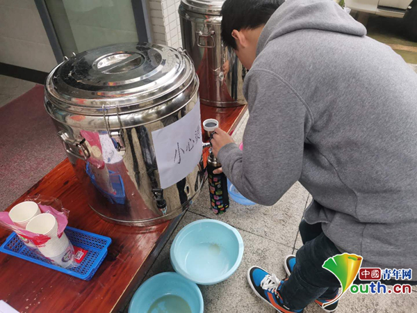 圖為(wei) 學生正在飲用“大鍋湯”。中國青年網通訊員 沈萌萍 攝