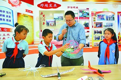 圖為(wei) 老師在為(wei) 學生們(men) 上科普實驗課。徐天鵬攝