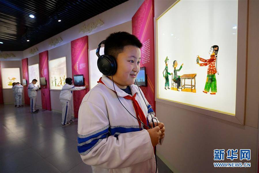 10月19日,小學生們(men) 在中國灤州皮影博物館內(nei) 參觀一幅皮影長卷。 今年以來,河北省灤州市橫渠實驗小學成立皮影興(xing) 趣社團,在當地的中國灤州皮影博物館開設校外課堂,組織學生定期參觀、學習(xi) ,增強學生對傳(chuan) 統文化的了解。