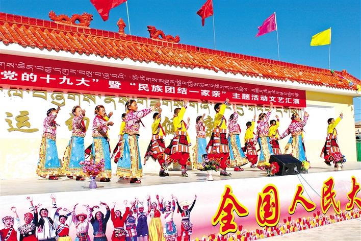 阿裏地區小學開展“民族團結一家親(qin) ”主題活動文藝匯演。(圖片由阿裏地區民宗局提供)