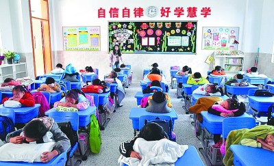 圖為(wei) 10月21日,淮安山陽湖小學,中午沒回家的學生在教室午睡。丁幼華攝