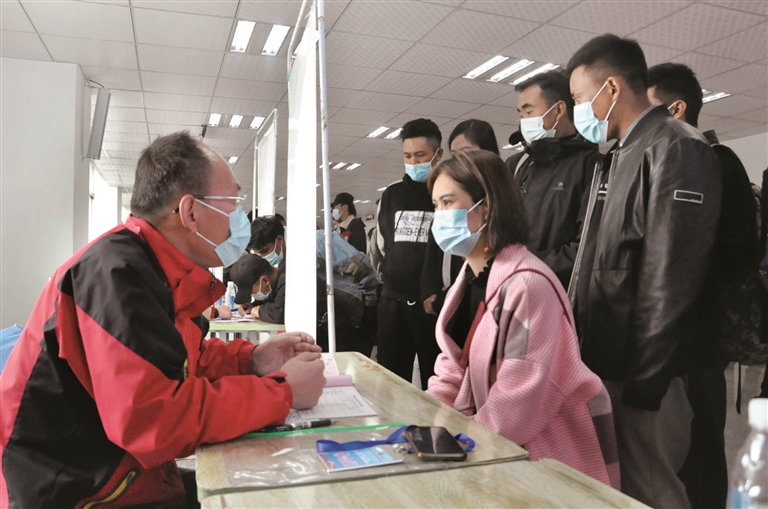 上午11時許,記者來到西藏自治區勞動就業(ye) 服務局,在該局就業(ye) 服務大廳一樓的電子顯示屏上,“助力就業(ye) 平台,情暖退役軍(jun) 人”宣傳(chuan) 語十分醒目,求職者正排隊入場。