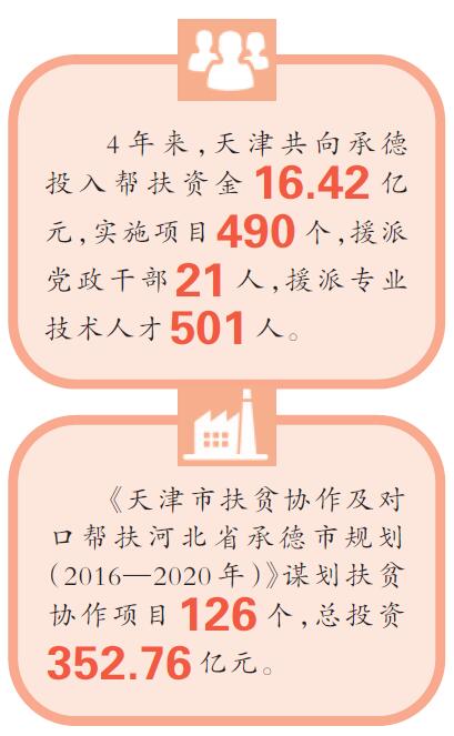 在東(dong) 西部扶貧協作背景下,天津與(yu) 承德攜手,共同編製實施《天津市扶貧協作及對口幫扶河北省承德市規劃(2016—2020年)》,謀劃扶貧協作項目126個(ge) ,總投資352.76億(yi) 元。