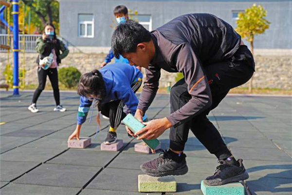 以“挑戰自我,熔煉團隊”為(wei) 主要理念的拓展運動,在“樂(le) 動會(hui) ”、“以問題為(wei) 本”、“冒險體(ti) 驗”、“全適能”等教育理念支撐下,按照“體(ti) 能消耗適中、心理挑戰較大、團隊熔煉為(wei) 主”的思路,設計成體(ti) 育課的一個(ge) 專(zhuan) 項,通過一係列全新的“項目遊戲”設計,讓學生“玩起來、樂(le) 起來、動起來”。並通過“小遊戲,大道理”進行引導反思,幫助學生掌握身體(ti) 健康、心理健康和社會(hui) 適應等方麵的知識和技能,成為(wei) 體(ti) 育與(yu) 教育完美結合的新模式。