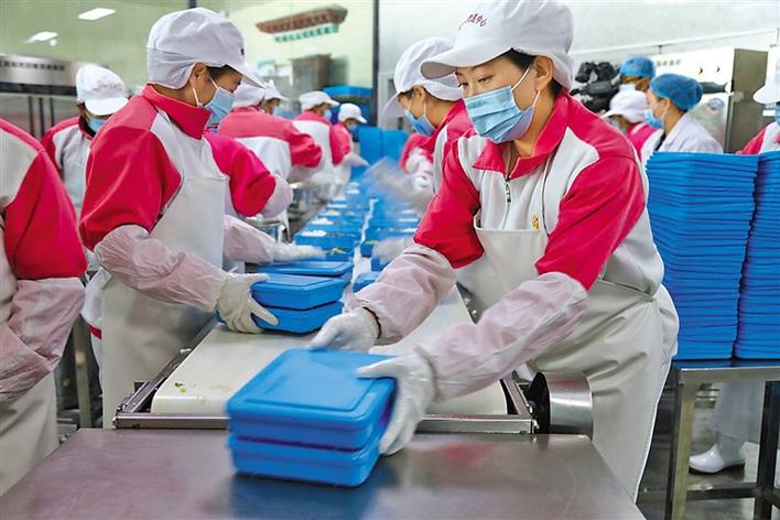 配餐中心員工正在打包學生餐。 黃誌武 攝