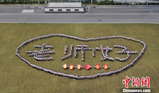 資料圖:學生在操場拚出“老師好”字樣和愛心圖案獻禮教師節。孟德龍 攝