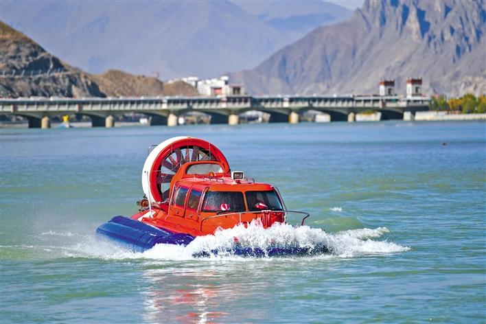 啟動儀(yi) 式現場的水陸兩(liang) 棲氣墊船。