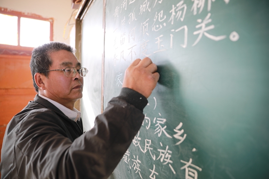 57歲的王建林是甘肅省白銀市會(hui) 寧縣最偏遠教學點——常山教學點唯一的老師。