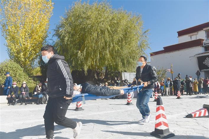 圖為(wei) 11月9日,布達拉宮管理處工作人員正在進行火場救援比賽。