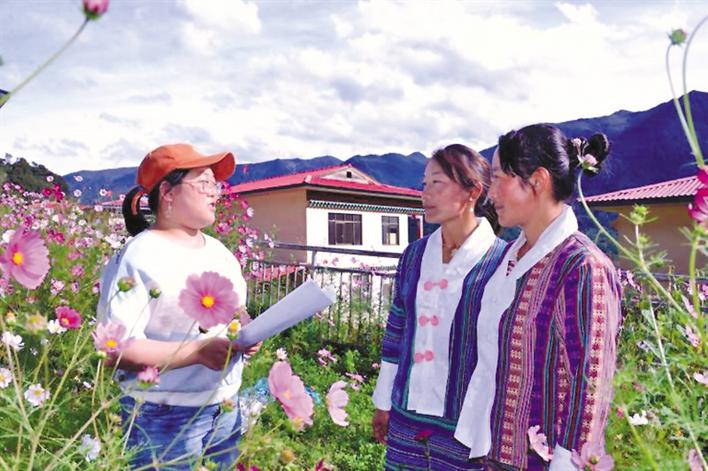 圖為(wei) 更章門巴民族鄉(xiang) 門仲村駐村工作隊隊員和群眾(zhong) 一起學習(xi) 中央第七次西藏工作座談會(hui) 精神。