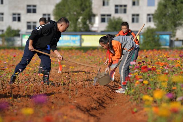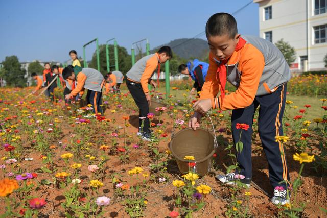 今年暑假剛剛到任江西省宜春市袁州區寨下鎮中心小學的殷大福校長看著教學樓前一大片長滿雜草的荒地,希望能在上麵做點文章,讓孩子們(men) 課後有個(ge) 休閑活動的好去處。於(yu) 是,他和老師們(men) 一起平整荒地,種下百日草的種子,開辟出花田和草坪。如今,昔日的荒地上已綻放出一片絢爛的花海,學生們(men) 的學習(xi) 生活因此更加豐(feng) 富多彩。美術課、十字繡興(xing) 趣小組的同學紛紛到花田邊寫(xie) 生、采風,孩子們(men) 在綠地裏玩耍訓練。每周,殷大福校長還會(hui) 組織不同班級的學生下田勞動,為(wei) 鮮花鬆土、施肥、澆水,讓他們(men) 親(qin) 身體(ti) 驗守護生活中美好的滋味。嗬護、陪伴、欣賞……一顆顆真善美的種子在學生們(men) 的心底悄然種下。